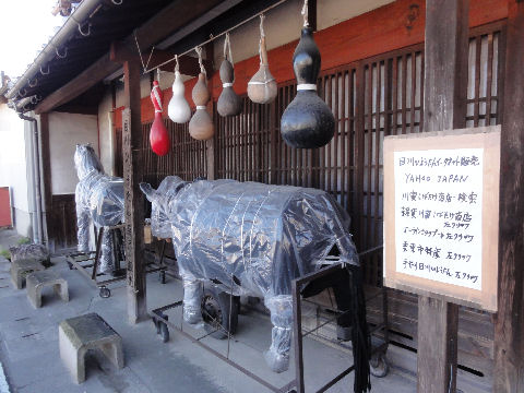 ひょうたんが名物?江戸から112里目、この先で右折する。 |