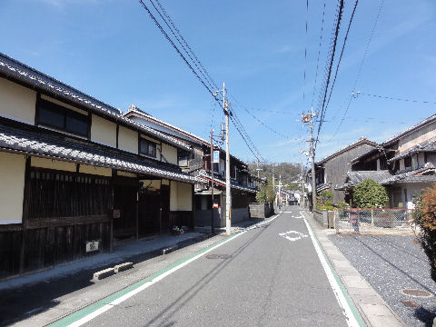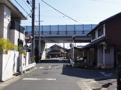 左側は畑に左手にはJR草津線の線路も見える。 |
