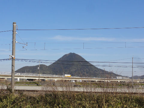 線路の向こうには山がぽつんと