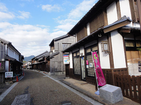 朝早くて人はいないこちらが東側の宿場、ごみ収集車が作業中だった。 |