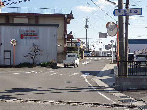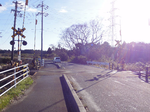 駅を過ぎて右折、踏切