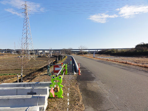 歩道工事中の堤防の道途中から歩道が出来ていて歩きやすい。 |