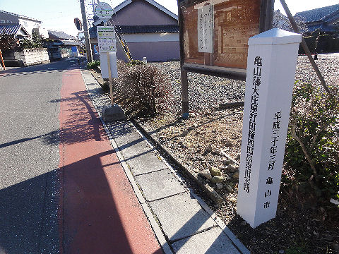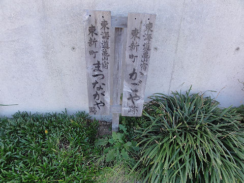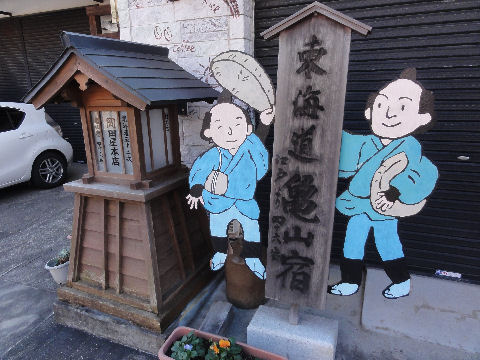 亀山宿の看板江戸時代の建物などは殆ど残っていない。 |