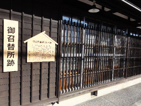 お召替え所跡明治天皇が通った際に庶民の暮らしを見るため役人の服に着かえて視察したという逸話。 |