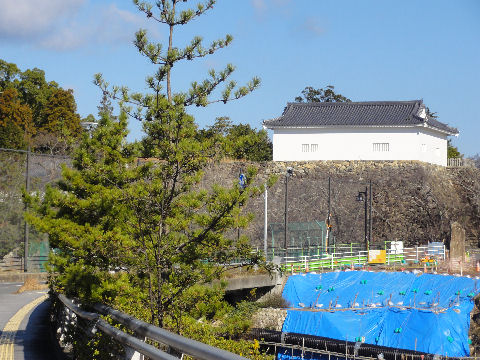 多聞櫓が見える地震?で石垣が崩れて修復工事をしたはず、まだ工事継続中?。 |