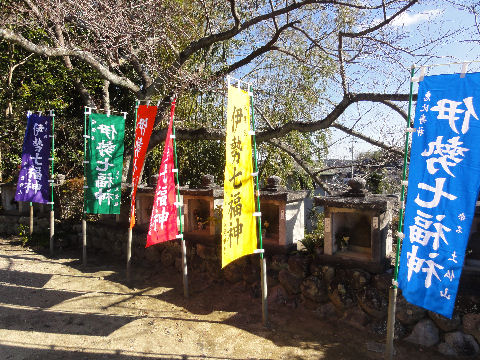伊勢七福神の旗が桑名の大福田寺の名もあった。。 |