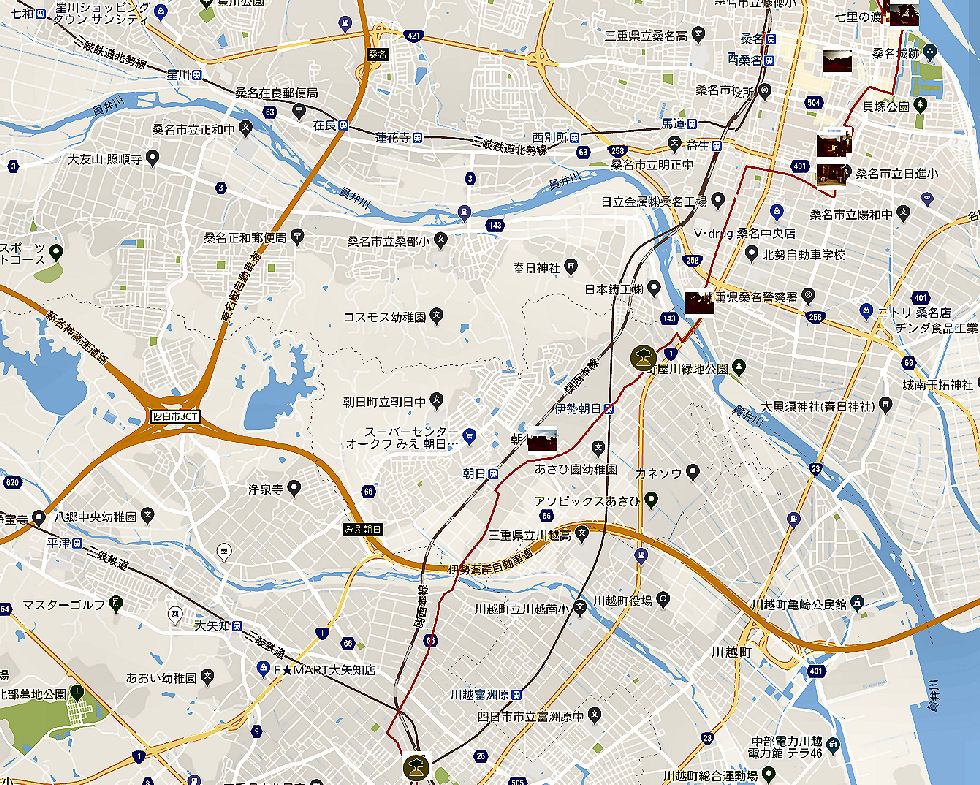 左側は大きな日立金属の工場桑名は昔から良質の砂があり鋳物の街。 |