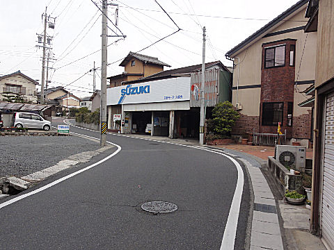 道は右へゆっくり曲がるこのあたり機械加工の工場もある。 |