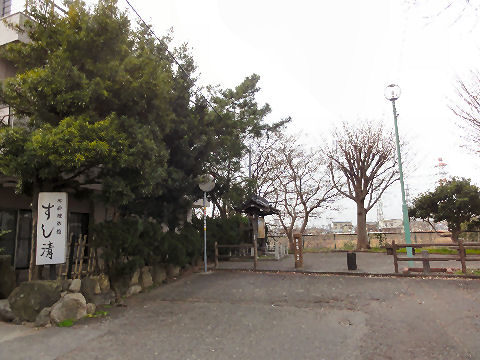 渡し場跡だが堤防がたかくなって水門もでき昔の風景はない。 |