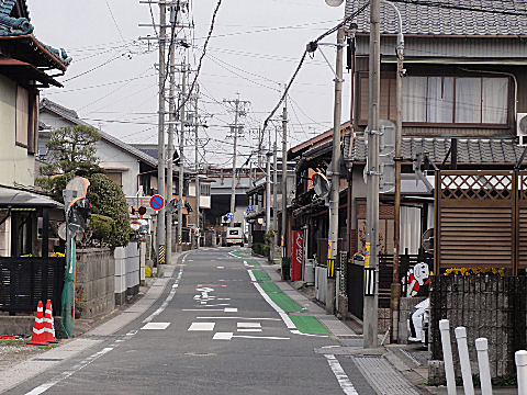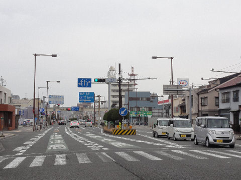 昨日のゴール地点の交差点に昨日は左手から来た、今日は右手へ進んで桑名を目指す。 |