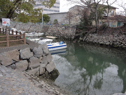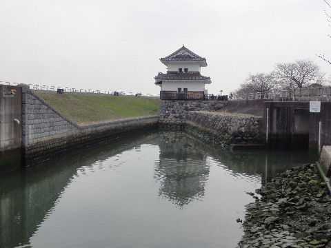 堀沿いに進む桑名城は松平で徳川一門だったので戊辰戦争で負けて打ち壊され残るものは少ない、場内に民家も多い。 |