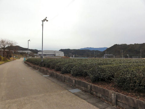 茶畑の間を森へ入ってゆく街道逆方向から来ると急にぱっと視野が開ける場所。 |