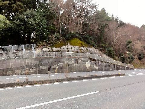 旧道は山を越えていた国道になった際に切り崩された名残りが歩道に残る。 |