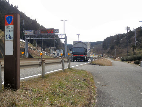 歩道橋から鈴鹿峠方向このあたりは片道2車線で広い、車の量は第2東名の開通もあり減っているような。 |