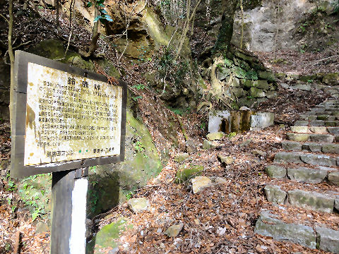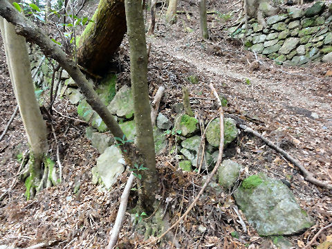 昔の石垣?つづら折りの坂道を守る石垣? |