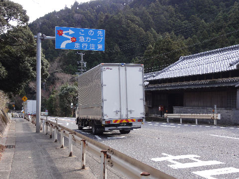 国道を横断し右側へ峠越えの道は右へ行くので横断、それほど交通量もなく横断に困難はなし。 |