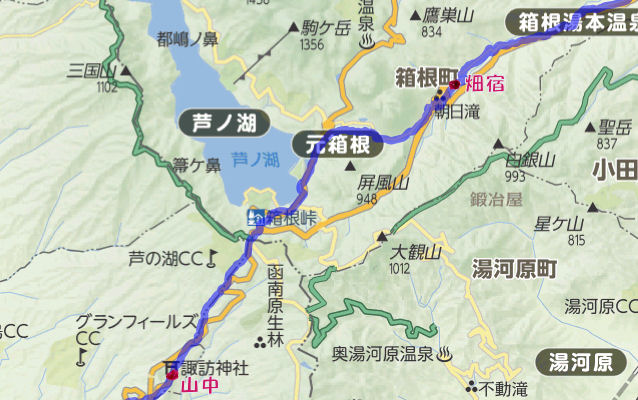 しばらく登り坂下りと思っていると箱根の手前の尾根を越える坂に。 |