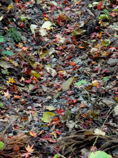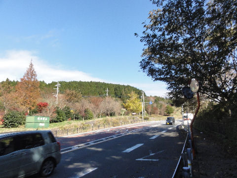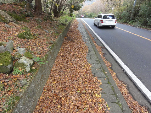 しばらく国道歩き歩道は落ち葉で一杯、踏みしめて歩く。 |