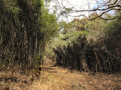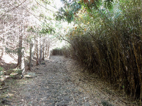 竹に覆われた道冬なのでトンネル状にはなっていない。 |