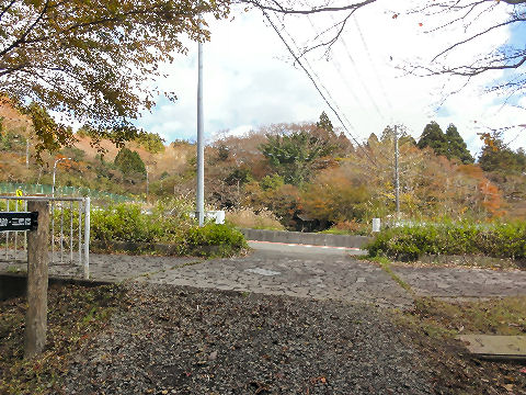 目の前はゴルフ場ここを右手へ進むと峠となる。 |