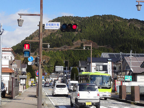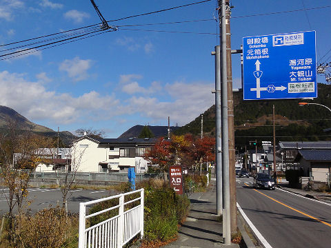 右手へ迂回し横断歩道を渡る。箱根の山の方が見えてくるようになった。 |