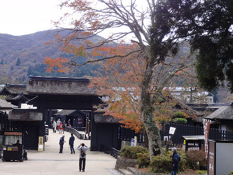 東の出口から関所を望む関所の山側には柵があって関所逃れ出来ないようになっていたはず。 |