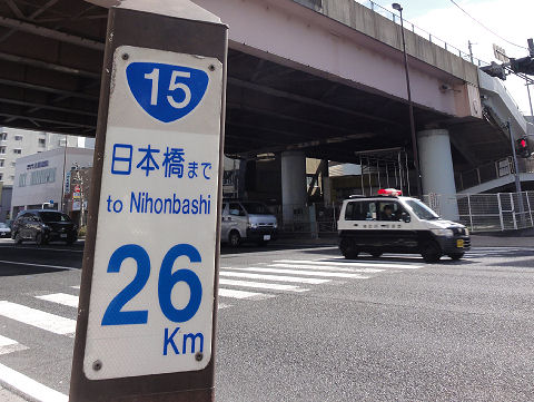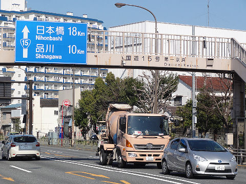 ![]() 直ぐに国道15号線へ出て左折国道15号線の上には首都高速道路が被さっていて圧迫感あり。 |