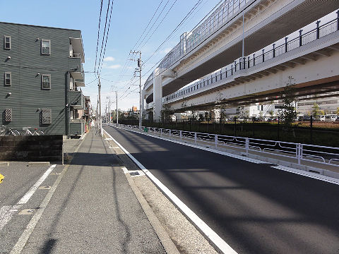 ![]() 右手は高速道路の高架下の緑地に右手、元は工場敷地内だったが高速道路ができて公開緑地になっているよう。 |