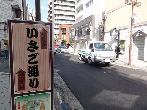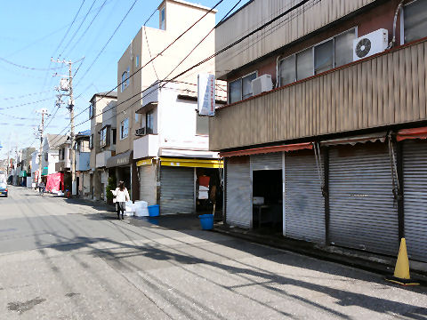 ![]() 生麦は漁師の街、魚屋や海産物屋が多い時間が遅いので魚屋はもうお終いで店じまい。右手裏はすぐに海で船溜まりになっている。 |