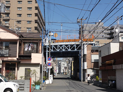 ![]() 鶴見線の高架が見えてきたくぐる左手が「鶴見線・国道駅」、もちろん無人駅。 |