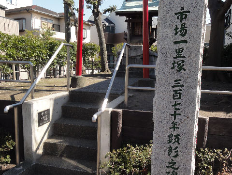 ![]() 市場村一里塚の碑江戸から5つ目の一里塚、昭和初期までは榎が茂っていたよう。 |