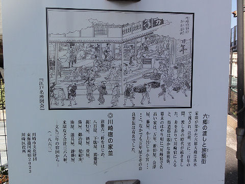 ![]() 六郷の渡しの説明板江戸初期は橋があったが流された後は渡しになった。 |