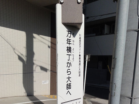 ![]() 橋の手前に大師道の分岐川崎大師へ参拝にゆく道が分岐してゆく。 |