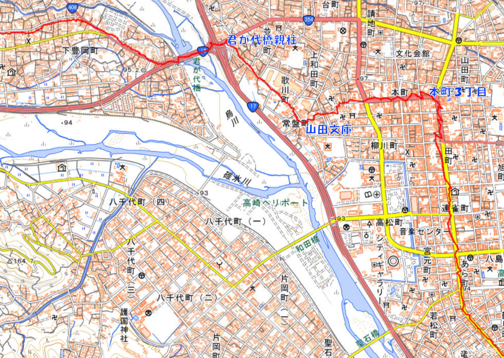 今日はここでゴール左折して倉賀野駅へ向かい帰宅、駅到着は13時55分。 |