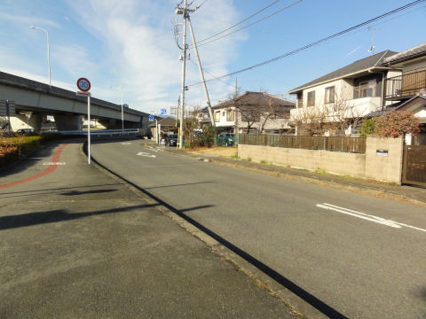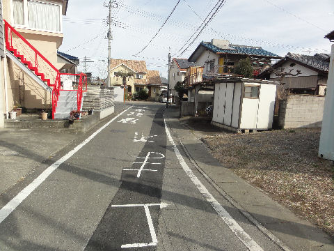 細い旧道はくねくねすぐに交差点、反対側の道へ。 |