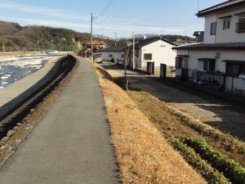 堤防から下りて旧道へ堤防沿いの道が旧中山道。 |
