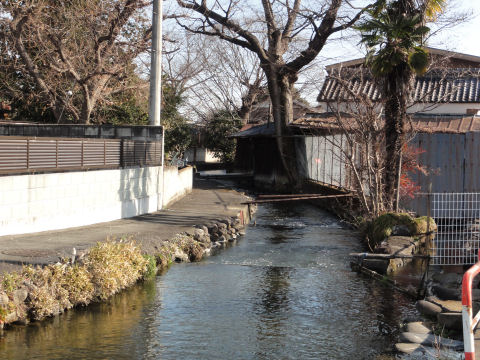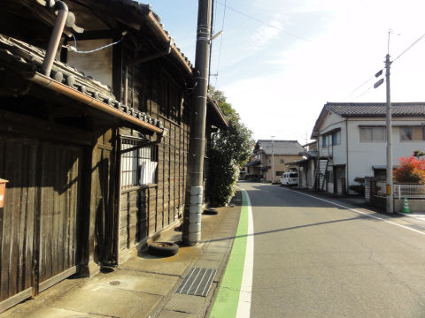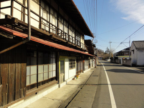 古い家も残る宿場だった?道は真っすぐ進むが突き当りには倉庫、橋がないので右手の橋へ。 |