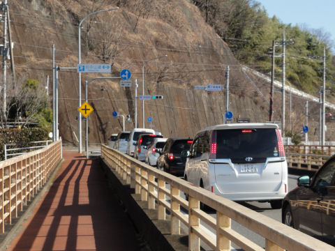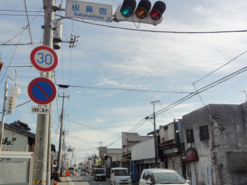このあたりで向こう側の旧道へ国道は渡れないので先の信号へ行って戻る。 |