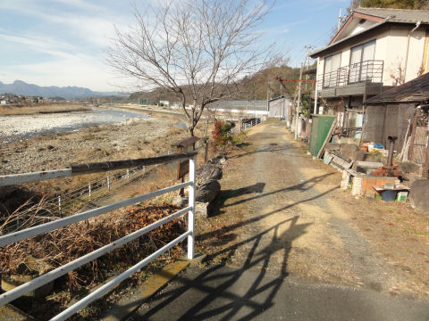 橋の袂に残る旧道のなごりこの民家の前あたりに橋が架かっていた。 |