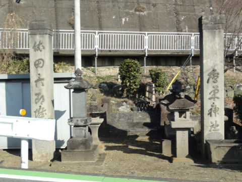 群馬八幡社の鳥居信越線の向こう側にあるよう、遠い。 |