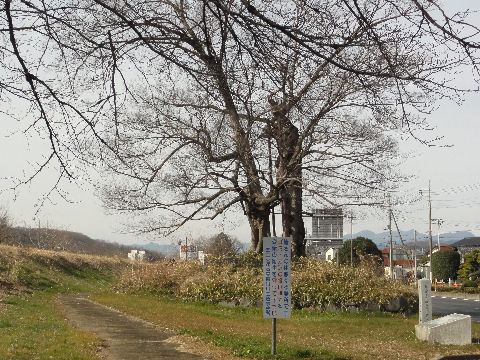 一里塚が残っている国道と堤防の間によく残った南塚。 |