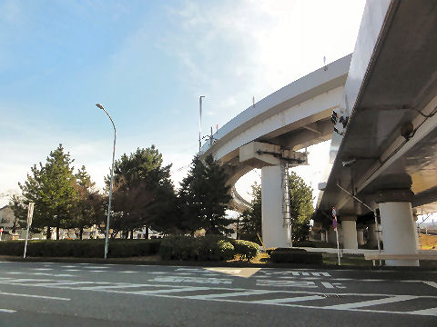 真ん中が高架の橋・新君が代橋真ん中に高架へ繋がる道がある。 |