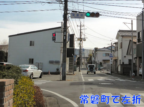 常磐町の信号で左折し東へここで東へ方向を変えて進む。 |