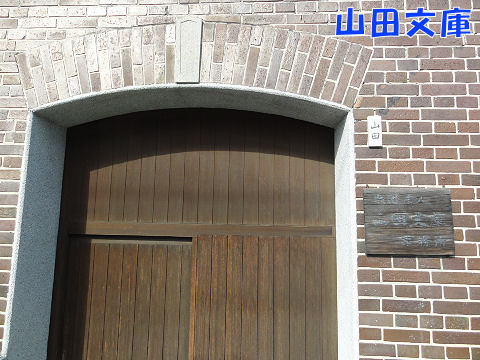 角を曲がり山田文庫の煉瓦造り昔ながらの日本家屋を改装した木造の和風図書館、貴重な文化財であるという茶室、書庫として使われている土蔵などが あるという。 |