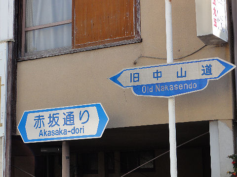 ここは赤坂通り「旧中山道」の標識と共に。 |