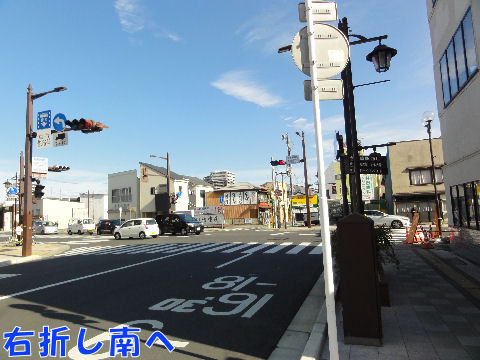 本町三丁目で右折する本町一丁目、二丁目と進み三丁目で広い道は終わり、右折して南へ曲がる。 |