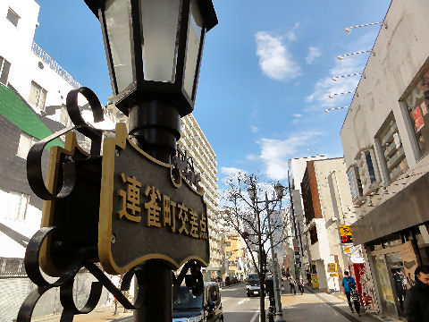連雀町交差点東へ進む道は連雀通り、江戸時代は紙の販売店があったそう。 |
