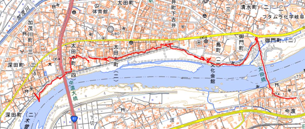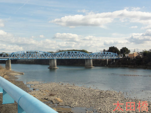 先に41号の橋、その奥に太田橋中山道は太田橋あたりに太田の渡しがあった。 |