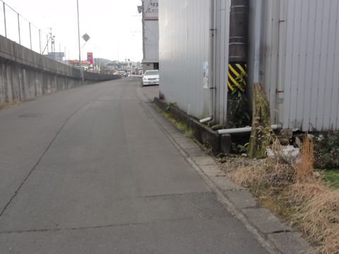 右手には市街地二階建ての高さ位の段差がある。 |