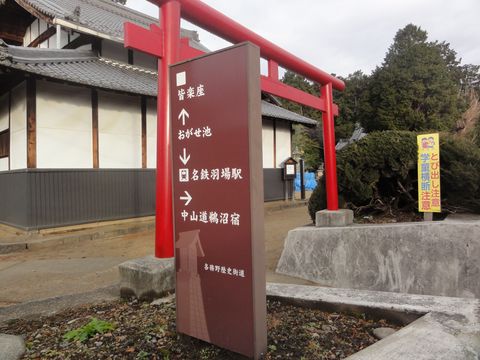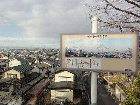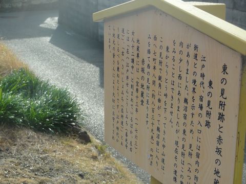 説明板ここが鵜沼宿の東端だった。ここを左折して坂道を上ってゆく。 |